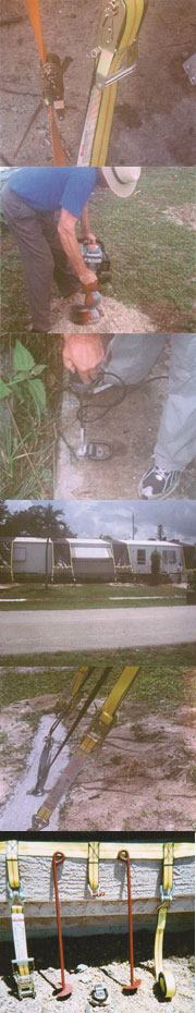 steel anchors set in wet concrete 3 to 4 feet deep,